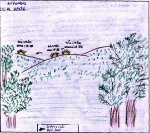 Realicen un registro de los lugares y horarios en que ocurre la salida (o la puesta) del Sol durante un lapso no menor a un mes. Para ello, dibujen con atención el horizonte este (u oeste) mirando desde la escuela o desde la casa de ustedes y vayan registrando el lugar por el que observan al Sol salir (o ponerse) y en qué horario ocurre esto. Realicen esto mismo, por lo menos, cinco días distintos a lo largo de un mes. Indiquen en el horizonte dibujado dónde se encuentra aproximadamente el punto cardinal este (u oeste) y analicen para dónde se corrieron las salidas (o puestas) del Sol (si hacia el norte o hacia el sur).