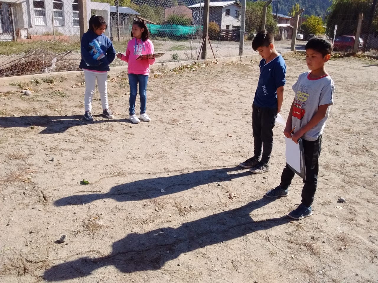 Como observar el desplazamiento del Sol en el cielo es complicado ya que no debemos mirar directamente hacia él sin protección adecuada, es mucho mejor registrar los cambios que ocurren en las sombras a medida que el Sol se desplaza. Eso fue lo que hicimos con los alumnos... Sí, con los alumnos... ya que registramos directamente los cambios en la sombra de algunos de ellos a medida que el Sol se desplazaba. Vimos que la sombra se hacía más corta (era de mañana) y que giraba de oeste a este. ¿Esto que nos dice? Que el Sol asciende y que se desplaza en sentido contrario... ¡Linda actividad!
