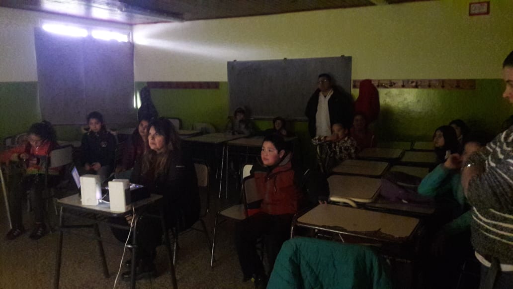 ¡Qué lástima que ese día estuvo muy nublado en El Bolsón! Y que la ruta a El Maitén estaba peligrosa, por lo que no pudimos ir a ver el eclipse desde allá... Por ese motivo, seguimos en vivo la transmisión del eclipse total de Sol desde la provincia de San Juan, donde estaba el Grupo Osiris realizando la observación junto a Diego Galperin (coordinador de nuestro proyecto de astronomía escolar), Mariano Risiglione (docente de la escuela) y dos alumnos de 7mo. grado (Farid y Brisa). ¡Qué sorpresa cuando vimos en la transmisión en vivo a Diego Galperin hablando desde San Juan! Y qué bueno tener el recurso de poder seguir la transmisión en vivo desde San Juan mientras aquí en El Bolsón era imposible observar el cielo debido a las nubes...