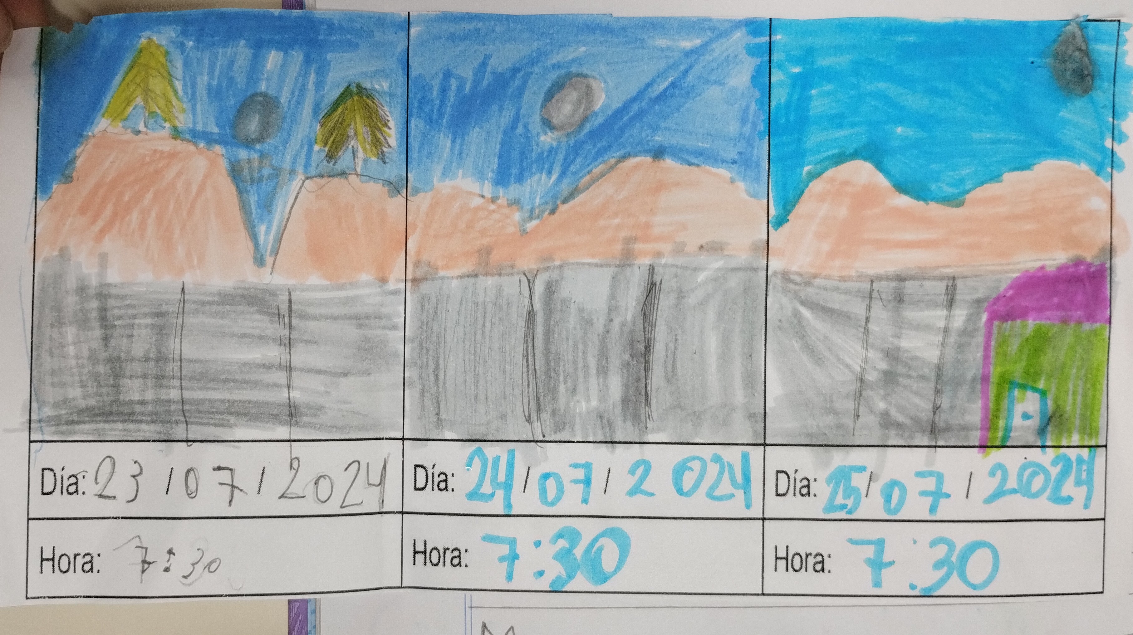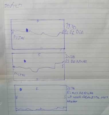 Los/as estudiantes tenían que dibujar en el cuadro la posición de la Luna en tres días diferentes.