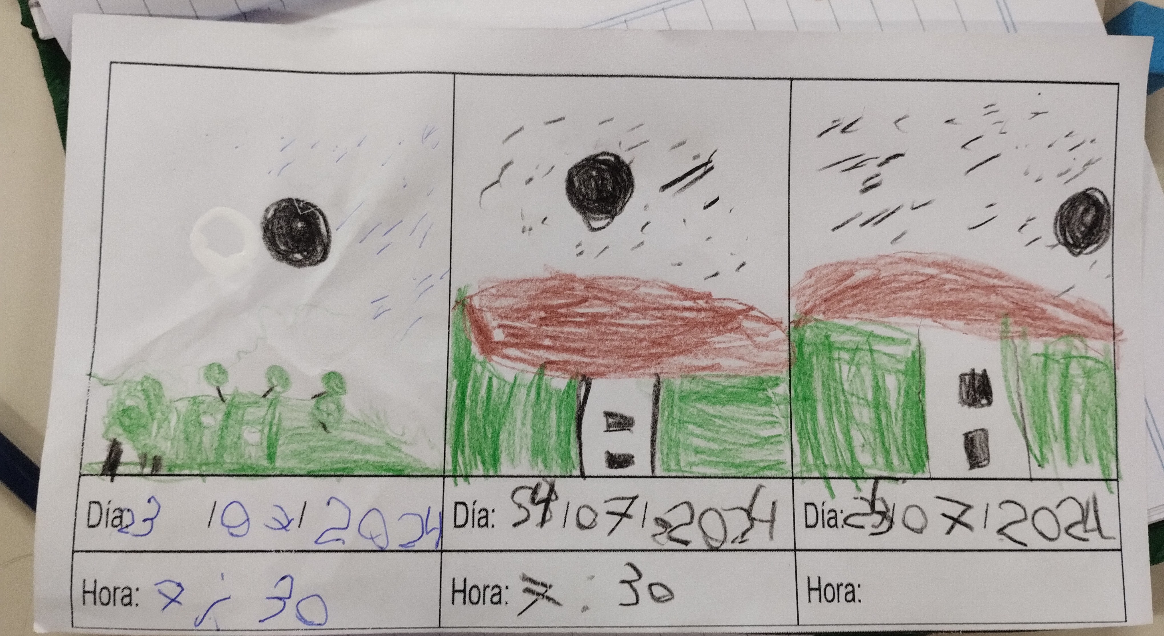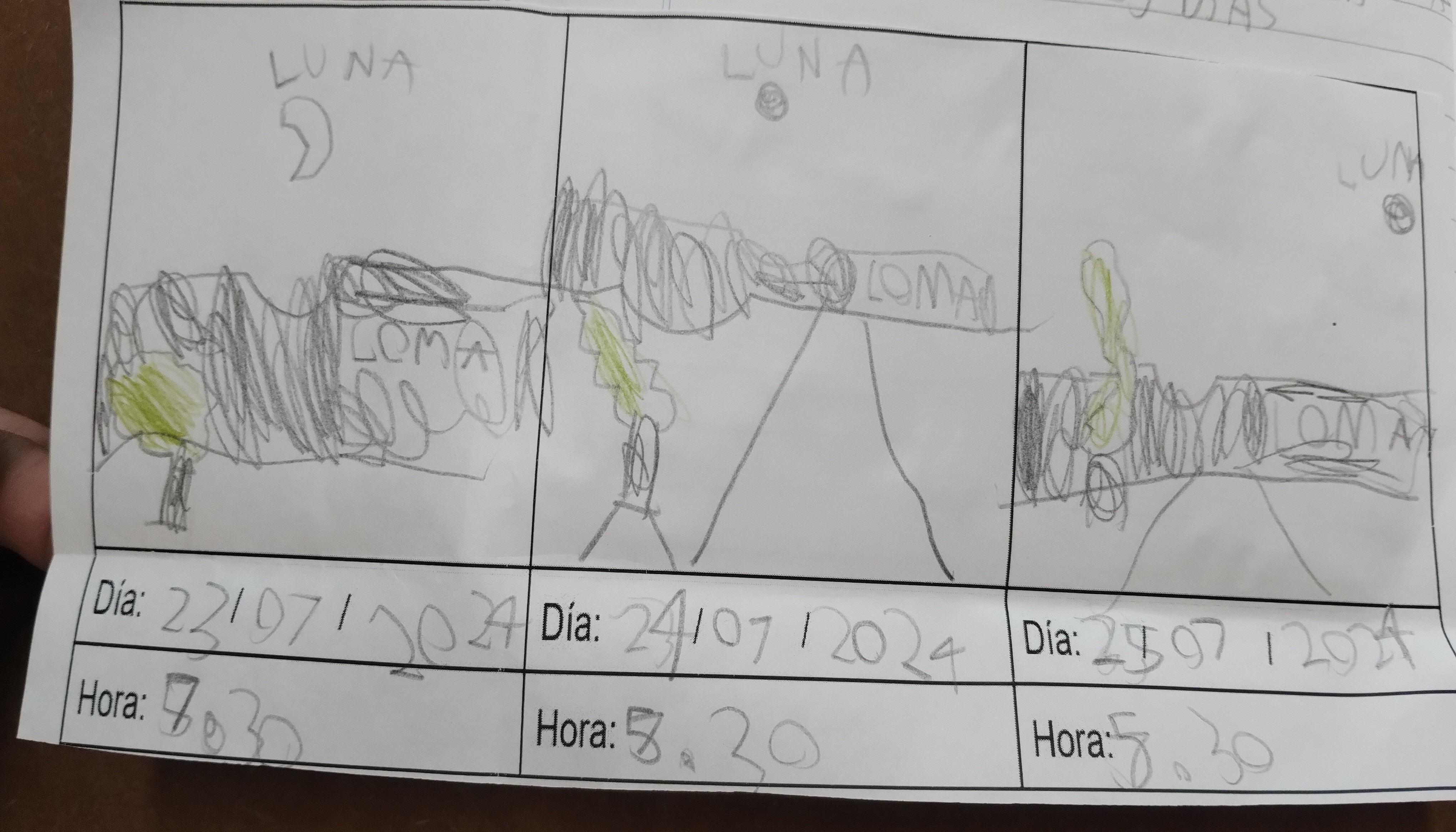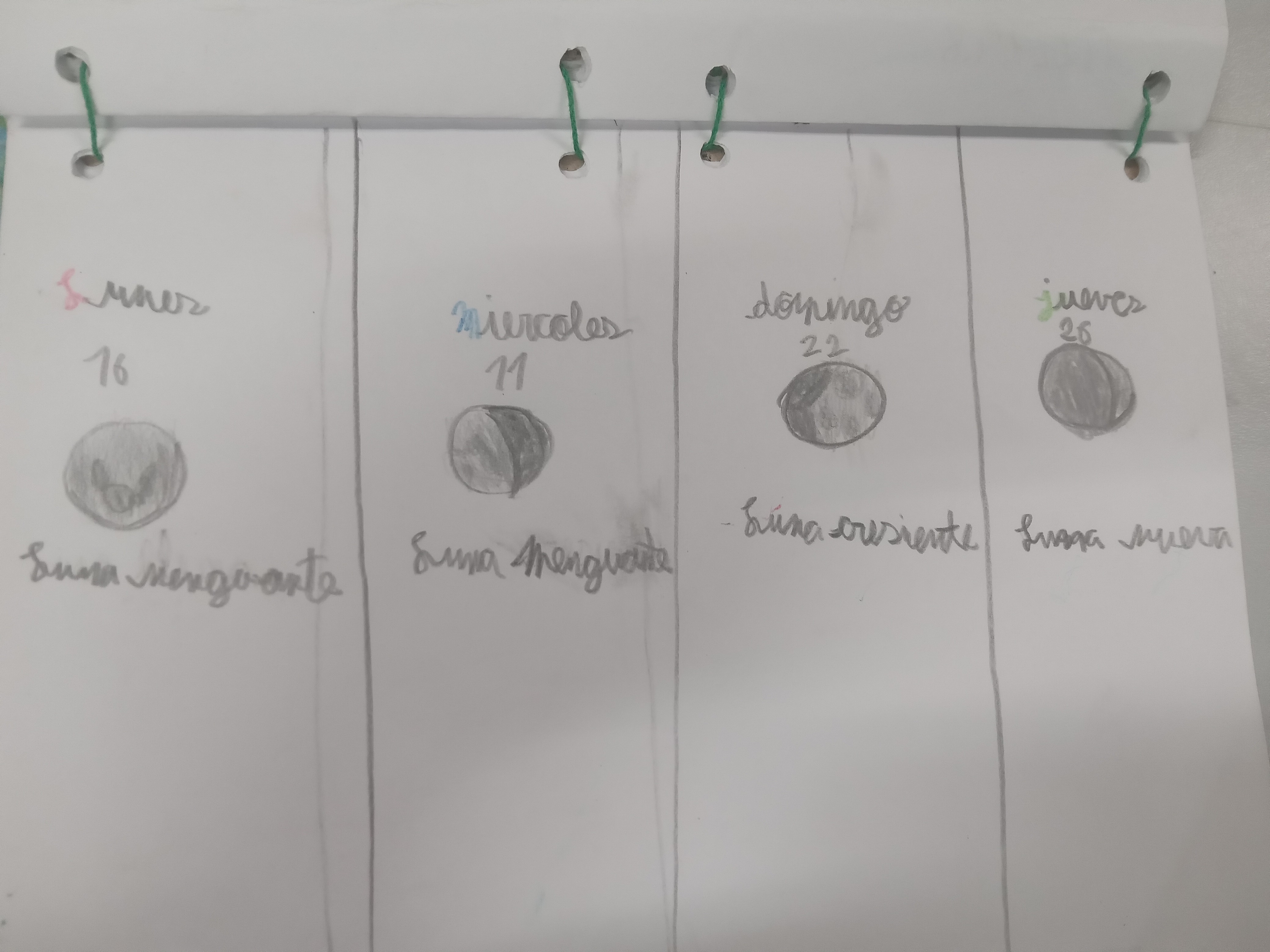 Los/as estudiantes tenían que dibujar en el cuadro la posición de la Luna en tres días diferentes.