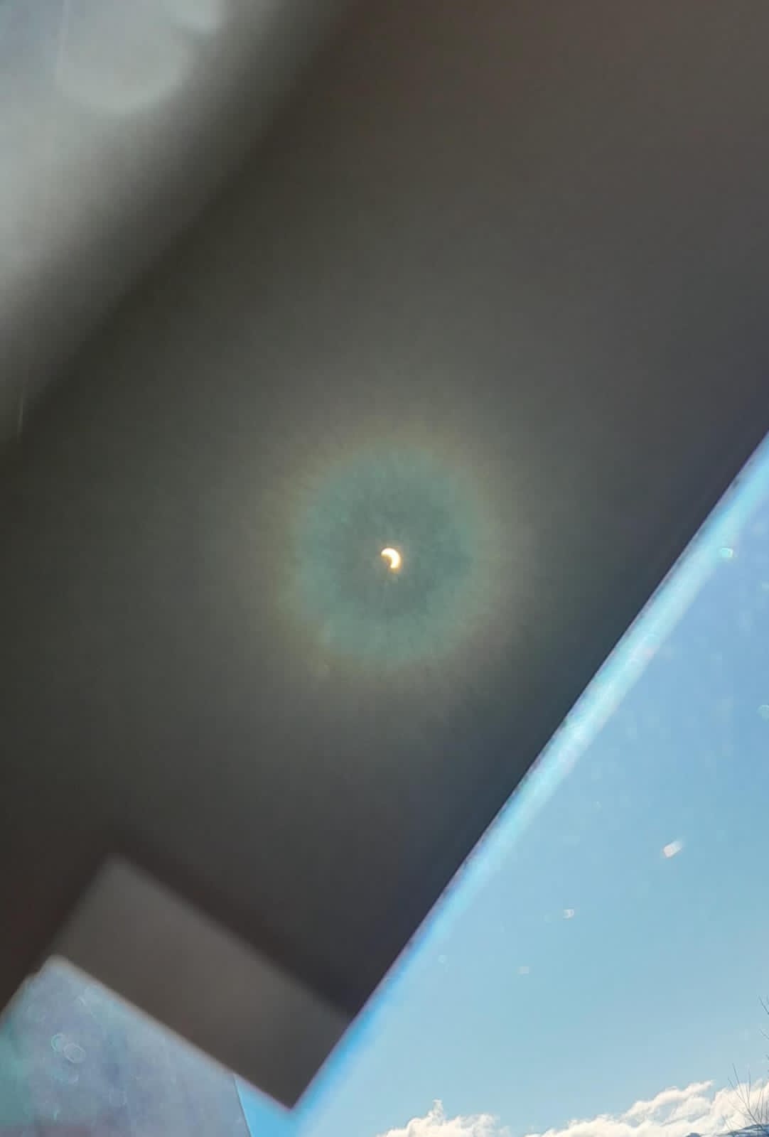 Para poder observarlo construyeron la caja que enviamos por el grupo de familias y una foto de lo observado con anteojos. Contaron que no vieron desde el principio sino que esperaron al momento en que la luna lograba tapar lo más posible el sol que fue cerca de las 18 de la tarde