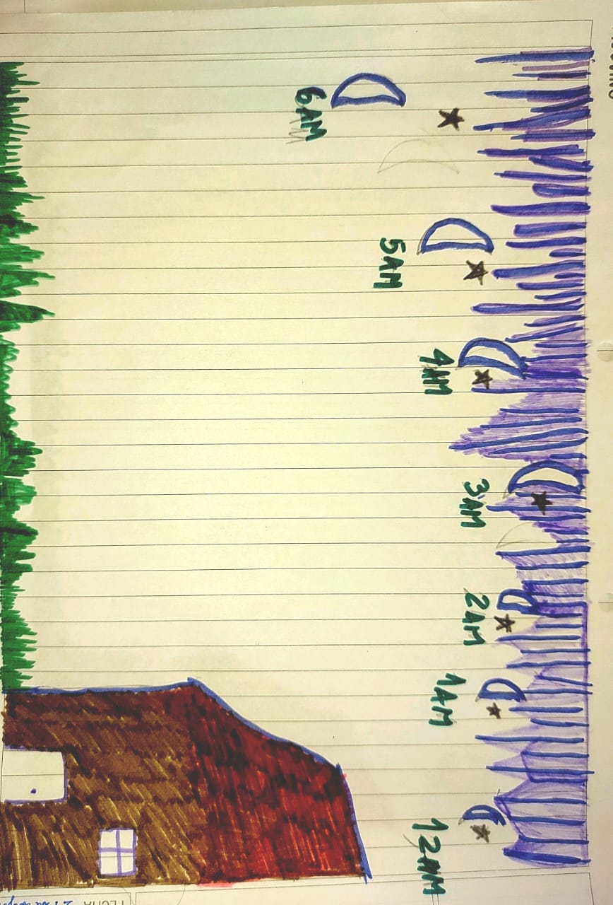 Comparto fotos de los dibujos que hicimos con 3ero sobre el movimiento de la Luna.
