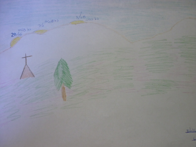 En los dibujos se ve cómo el Sol sale por un lugar el 7 de junio a las 10.08 hs, luego sale el 18 de junio más hacia la izquierda (el norte) y más tarde (10.13 hs) y el 3 de agosto sale más hacia la derecha (el sur) y más temprano (9.55 hs). Por otra parte, está buenísimo comparar con lo que ustedes pensaban antes, que el Sol salía siempre por un mismo lugar, que casi todos pusieron que era el centro del cerro Piltriquitrón. Tendríamos que seguir observando para ver en qué fecha el Sol llega a salir por ahí. Hoy todavía no...