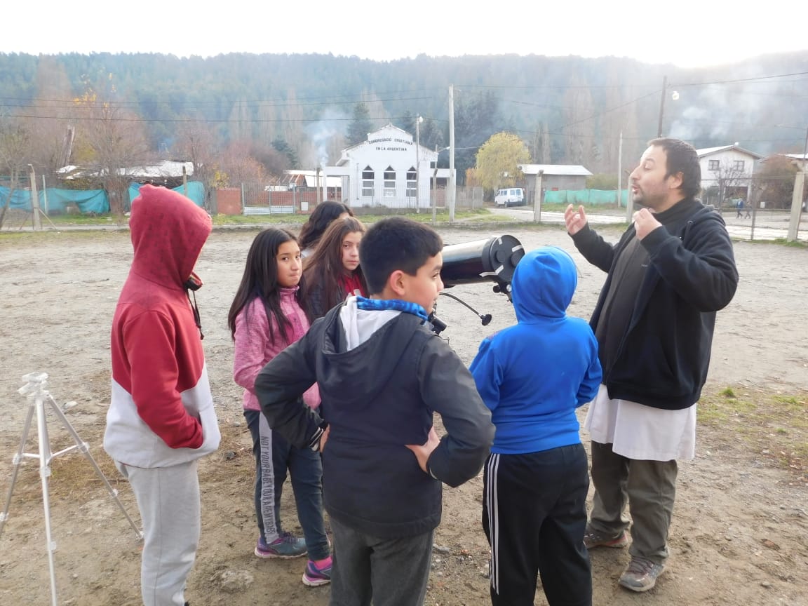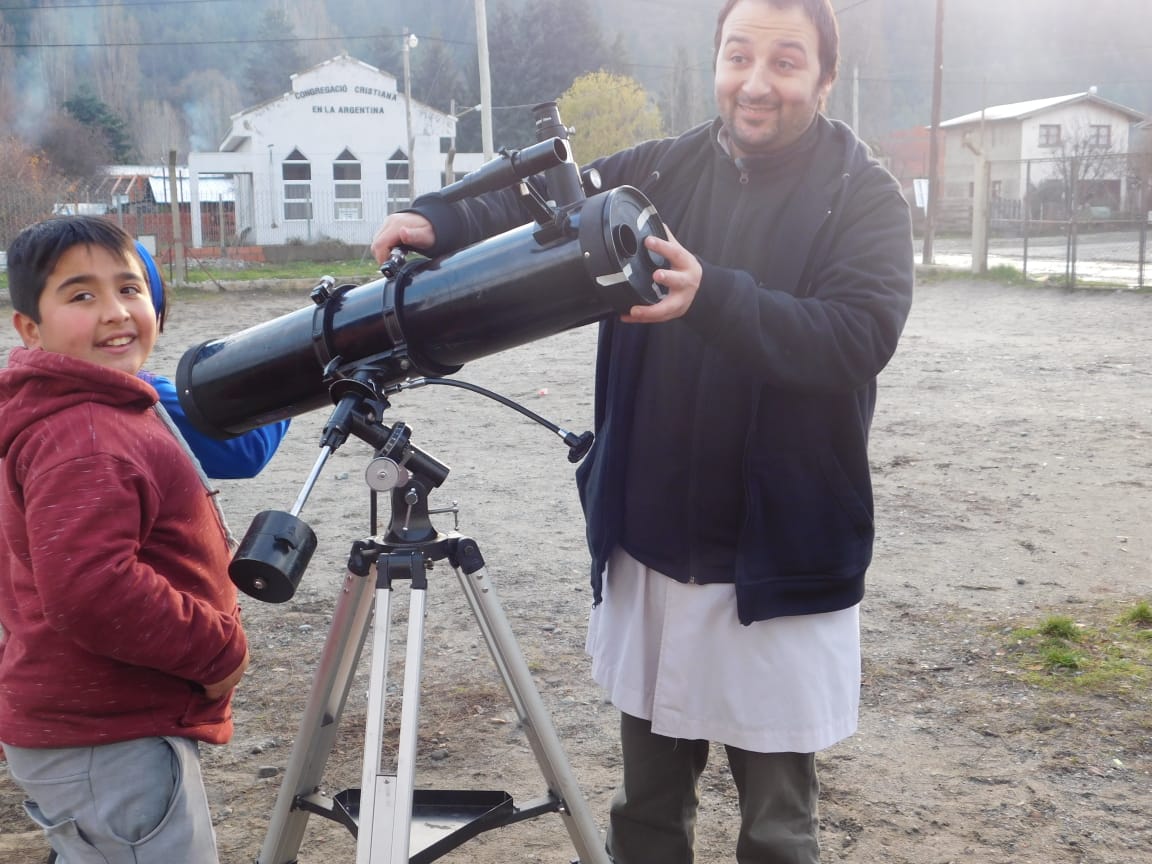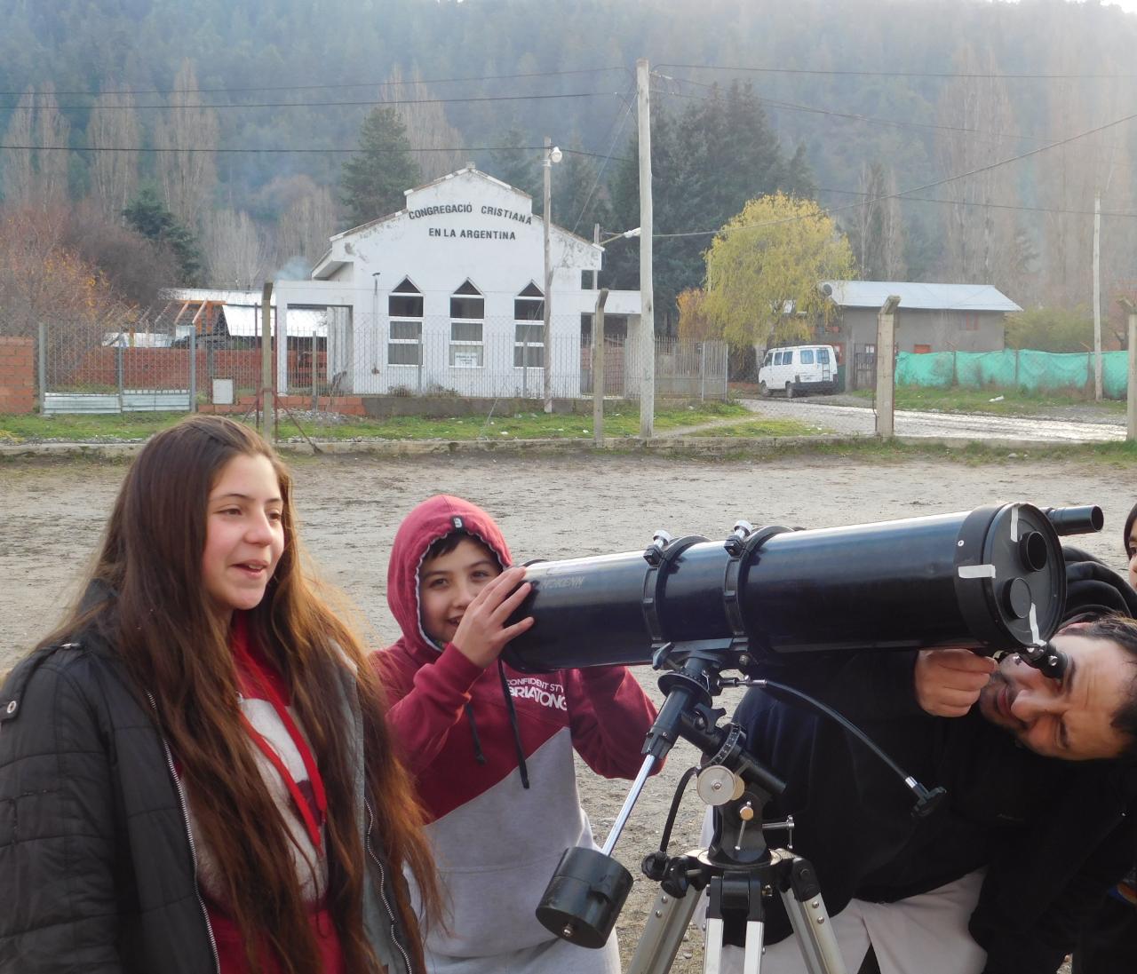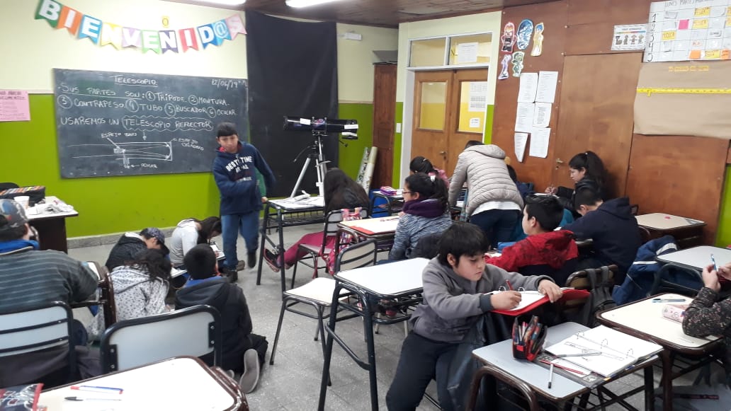El profe Guillermo Módica convocó a los alumnos interesados de 6to. grado a juntarse en la escuela los jueves por la tarde, a contraturno, con el fin de aprender cuestiones de astronomía adicionales que permitiesen que los chicos de 6to. sean quienes coordinen las actividades astronómicas a realizar en El Maitén (Chubut) durante la observación del eclipse parcial de Sol del 2 de julio. Una de estas actividades consistió en aprender a armar y a utilizar un telescopio reflector que pertenece al Proyecto "Miradas al cielo"