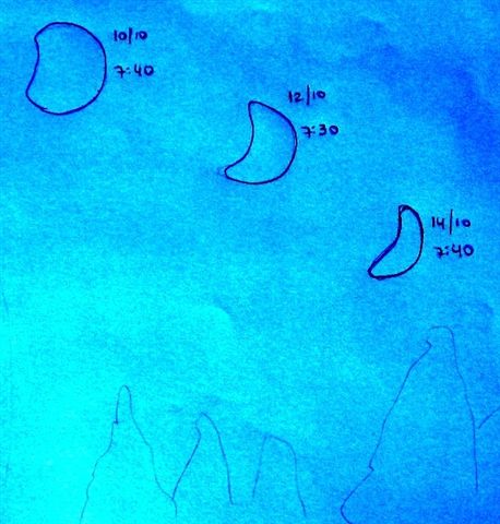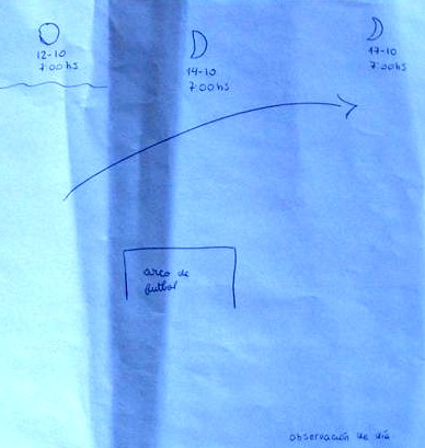 oeste (uno o dos días después de la Luna nueva) y dibujen la forma que
